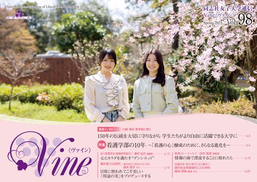 同志社女子大学と、在学生や卒業生など多くの方々が“Vine”(ぶどうの蔓)のようにつながっていくことを願い、本学を身近に感じていただくために、卒業生をはじめ、在学生のご父母等にお届けしています。