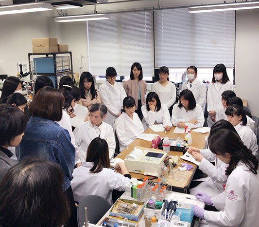 実際に白衣を着て、珍しいものや知らない器具を見せてもらいました。説明も丁寧で何をしているかが分かって面白かったです。過去に何回も行っているけれど、体験型講座の内容がいつも違っていて、ますます薬学への興味がわきました!