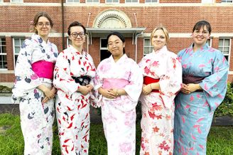 Japanese Studies Program (JSP)留学生がきもの着付クラブと邦楽部を訪問