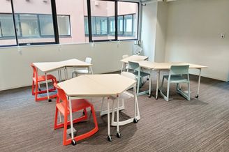 このたび、グループスタディブースBの座席配置を、従来の対面形式から2~3席ずつの小グループに分けた配置へと変更いたしました。