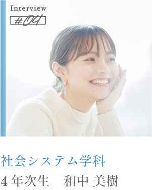 留学はもちろん同女で過ごした4年間で、社会に向ける自分の目線が高く広く育ったと思っています。留学先で身につけた異なる価値観を持つ人と対話する能力。幅広い知識を学んで得た、目の前の事象を多角的に見て問題を解決する力。これは卒業後も必ず役立つと思っています。就職予定のメーカーは、海外出張や駐在のチャンスもある会社。大学で得たコミュニケーション能力と問題解決能力を生かしながら、グローバルに活躍できる国際人をめざしていきたいです。