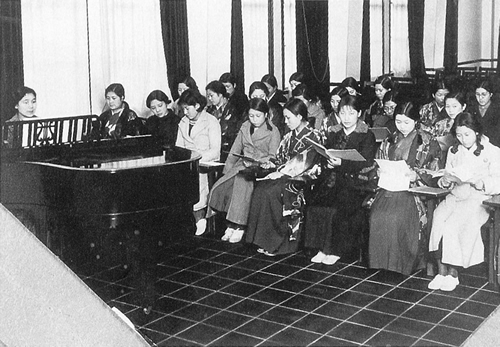 Doshisha Girls’ School became Doshisha Women’s College by the vocational school ordinance in 1912, as the English Literature and Home Economics departments were established. As the educational principles such as Internationalism and Liberal Arts indicate, lectures using English have been held in the Home Economics department since that time. Also, the English Literature graduation trip was held in Manchuria Korea. In 1922, Michi Matsuda was appointed as the first female principal. It is said that she inspired the students greatly, as she always recognized their personalities and encouraged their self-consciousness. Starting with 12 students at the time of opening, it reached 1,449 students in 1927, including students from the high school. Afterwards, in 1930, it was renamed to Doshisha Women’s College. Classes that pioneered girls’ professional education were held, such as typewriting classes.