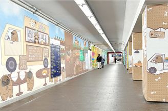 この取り組みは、四条通地下道の活性化の取り組み(四条通地下道活性化推進会議)の一環で、書類・プレゼンテーションの審査を経て選ばれた学生グループ6組が、地下道の壁や柱にアート作品を展示し、「歩いて楽しい空間づくり」に挑戦しました。