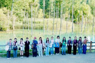 また、自然災害は時に観光資源化する事例もみられます。美瑛町では、火山泥流を防ぐ目的で作られた堰堤に溜まった池が、「青い池」として世界中から観光客を集めている実態について学ぶとともに、万が一泥流が発生した際に迅速に避難するための避難シェルターを駆け上がる体験を行い、観光地における防災の重要性を再認識するとともに、私たちの生活する京都や奈良での対策の実態についても考える機会となりました。