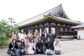 こうした地域を実地で考えていく上で、歴史的町並みの保存・修景の現状と課題について、現地調査・見学を通して理解するとともに、中心寺院である方広寺・蓮華王院・新熊野神社を拝観することを通して、京都の古代・中世においてこの地域の果たしてきた役割と意義にについて理解を深めました。さらに、京都の重要な産業の一つである京菓子体験をおこなうことで、歴史的遺産の実地学習だけではなく、現在における観光産業のあり方についても体験を行いました。