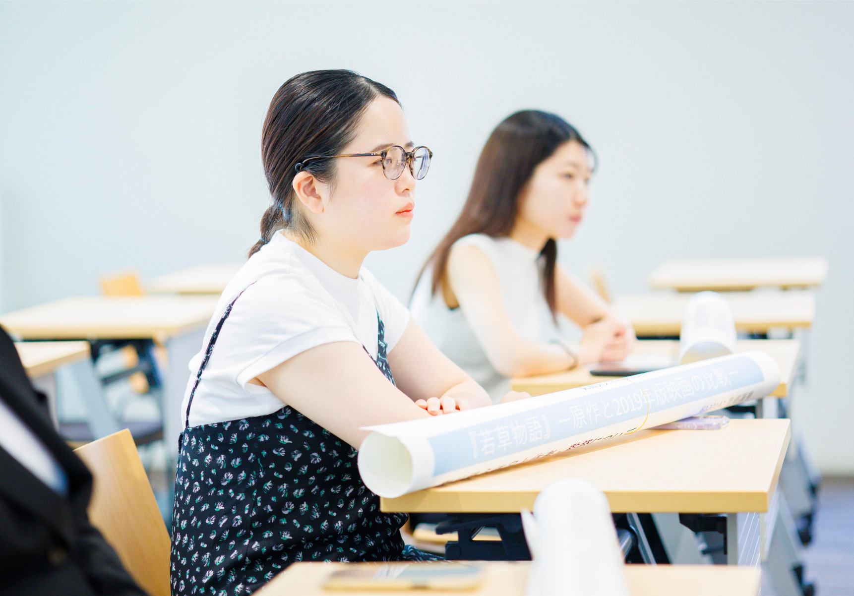 研究を深めるきっかけに。ポスターセッションが終わると、いよいよ本格的な卒業研究がスタート。学生それぞれに研究対象とする作品をより具体的に掘り下げ、分析の基点となるテーマについても理解を深めていきます。ゼミでは「ジェンダー」や「人種」など、似たテーマについて研究を行う学生同士でチームを組んで、ディスカッションを定期的に実施。作品に対する仲間の意見に耳を傾けることで、自分ひとりでは気づけなかったメッセージや、新たな発見が得られるのだと言います。また、福島先生は学生が対象とする多様な作品について全てに目を通し、面談では学生それぞれが「研究をどう完成させたいか」をヒアリングしながら、学術的なアドバイスを示してくれるのだそうです。