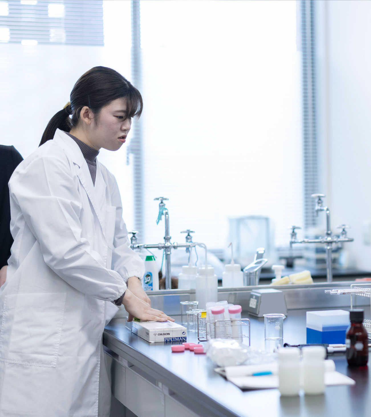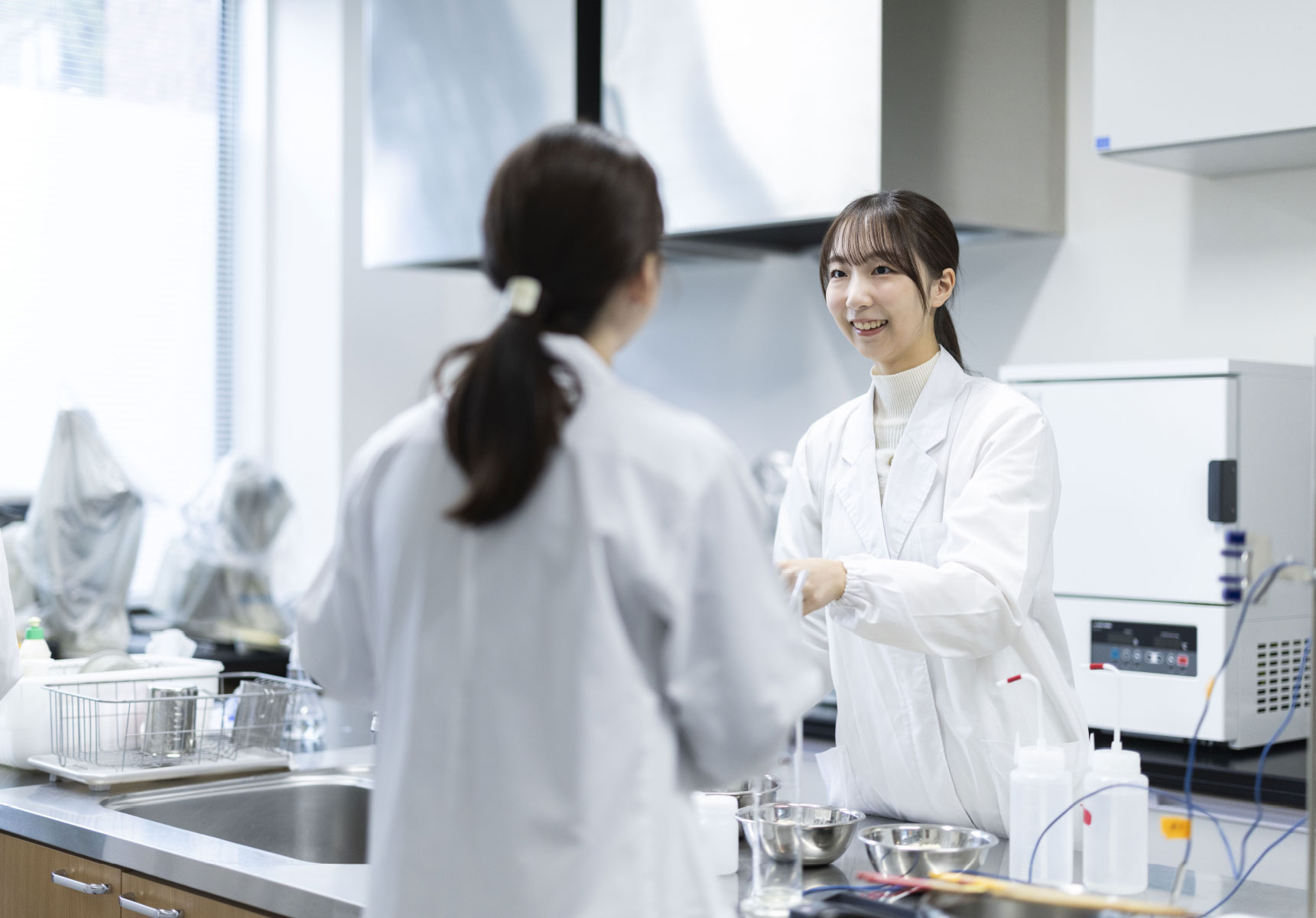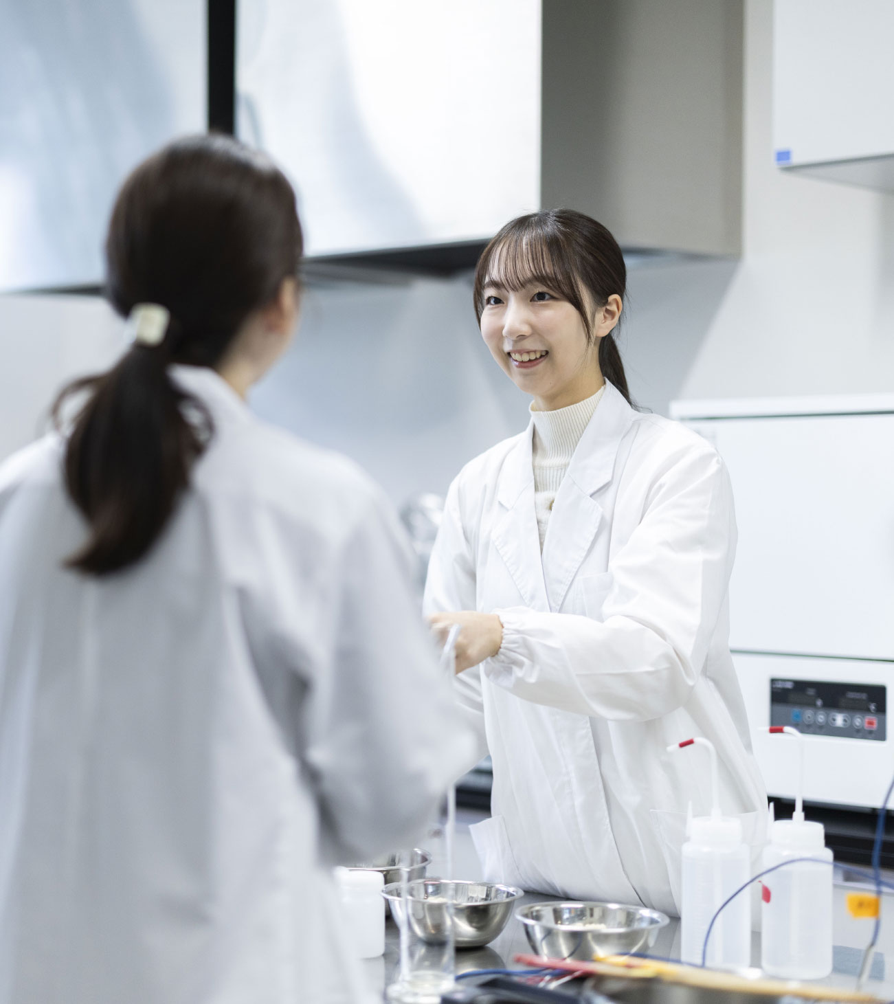 プライベートで役立てたい。この研究室を選んだのは、自分にとって身近にあった「調理に関する疑問」を、科学的な視点で学びたかったから。充実した調理器具を使っていろいろな調理法を試しながら実験ができるのは、この研究室ならではの特徴です。蒸す・焼くなどの調理の方法や、食材の切り方によっても、含まれている成分や味に変化が生まれます。科学を通して食品を見つめることで、これまで何気なく行っていた調理への認識が変化しました。ここで得た知識は、今後料理をするうえでも応用できると感じています。卒業後は食品関係の会社に就職予定。学んだことを生かして、食品の企画開発に携わっていきたいです。