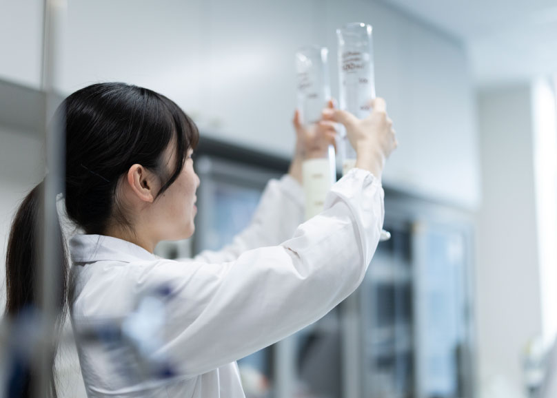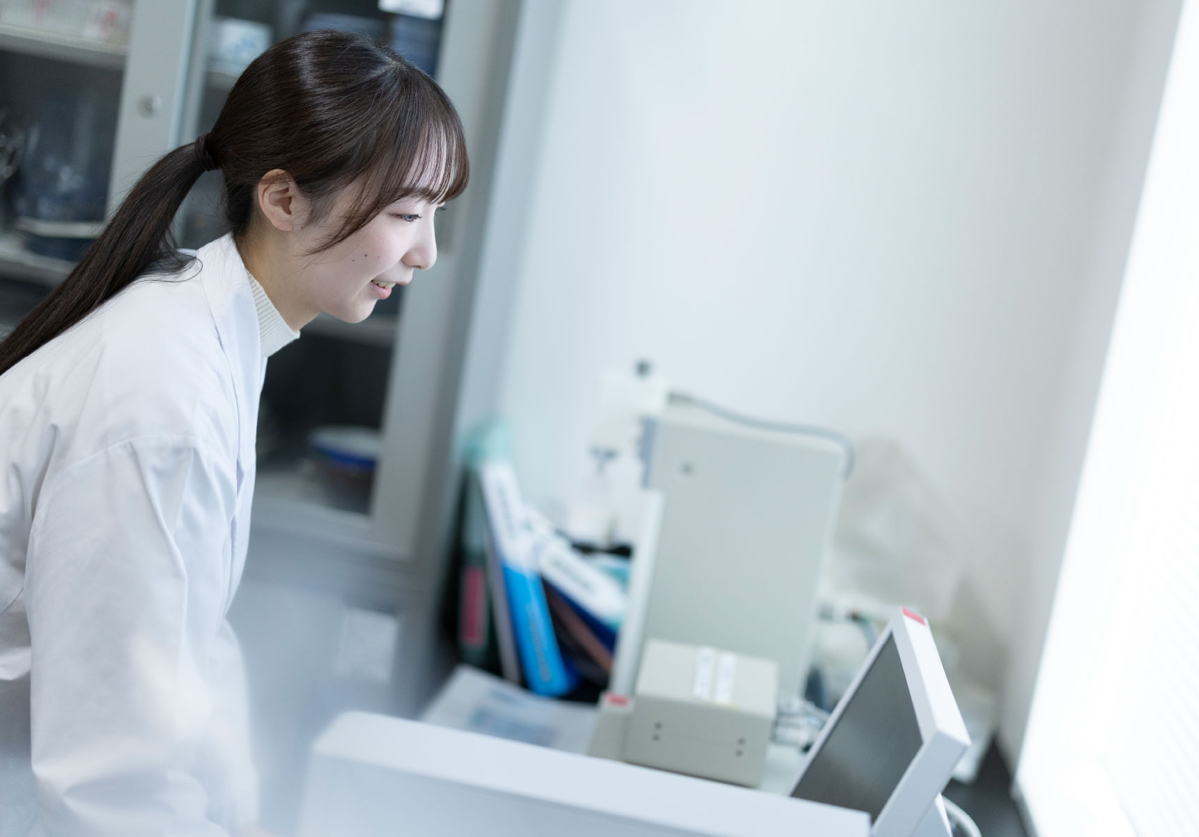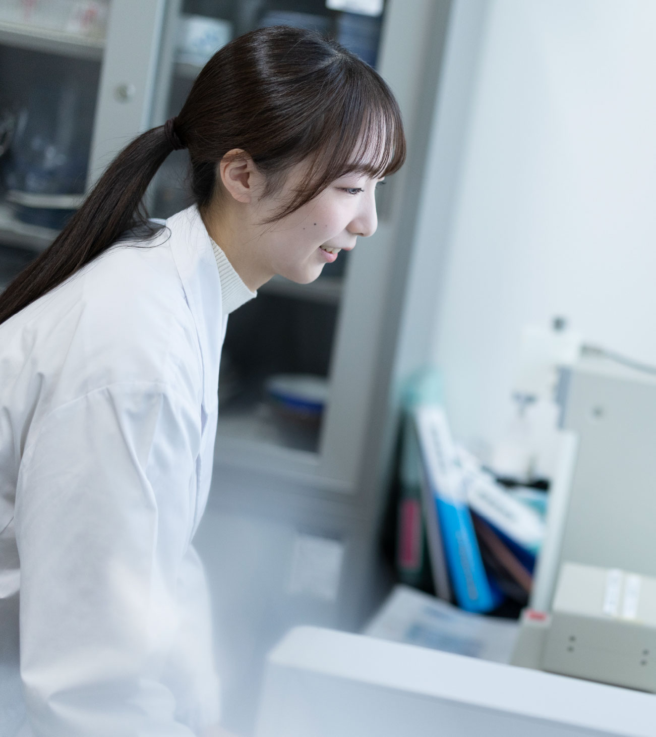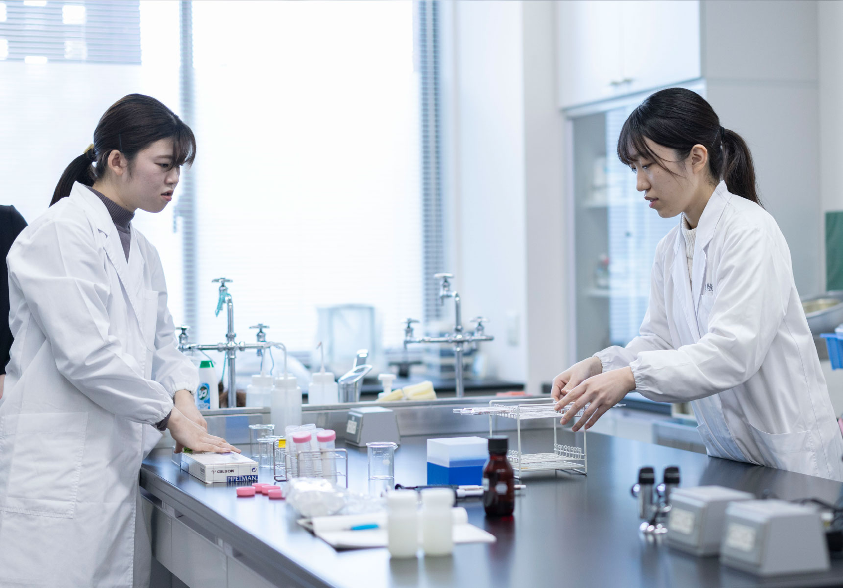 プライベートで役立てたい。この研究室を選んだのは、自分にとって身近にあった「調理に関する疑問」を、科学的な視点で学びたかったから。充実した調理器具を使っていろいろな調理法を試しながら実験ができるのは、この研究室ならではの特徴です。蒸す・焼くなどの調理の方法や、食材の切り方によっても、含まれている成分や味に変化が生まれます。科学を通して食品を見つめることで、これまで何気なく行っていた調理への認識が変化しました。ここで得た知識は、今後料理をするうえでも応用できると感じています。卒業後は食品関係の会社に就職予定。学んだことを生かして、食品の企画開発に携わっていきたいです。