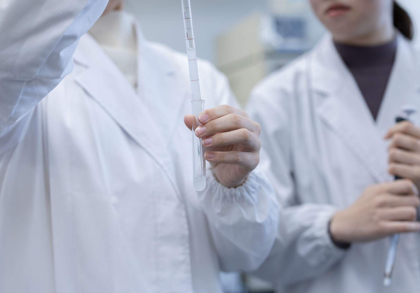 食材の特性を明らかに。卒業論文は、テーマごとにグループをつくって行います。例えばあるグループが題材にしているのは、「加熱処理をしたジャガイモとサツマイモのアスコルビン酸量の変化」というもの。加熱処理後、ジャガイモではアスコルビン酸量が減少するのに対し、サツマイモでは変化がない、という点に着目した研究テーマです。どの成分がアスコルビン酸量の変化に関係しているのかを明らかにするために、デンプンのみを取り出して加熱したり、論文を参考にしてモデル実験を行ってみたり……。実験は、地道な作業の連続で、予想と違った結果になることも多々あるのだとか。苦労を重ねながらも、学生たちはその過程で、食材を科学的な視点で見るおもしろさを感じ、学びを深めていきます。