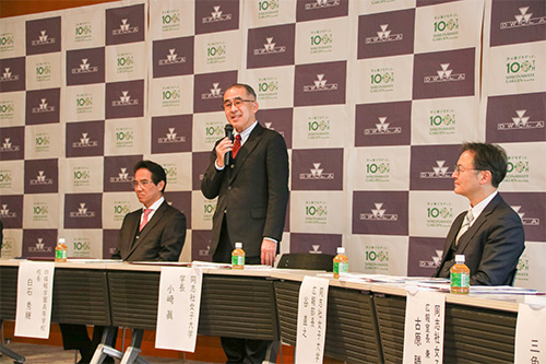 四條畷学園高等学校(大阪府 大東市)と同志社女子大学は、3月21日(木)に教育連携協定を締結しました。四條畷学園高等学校にて行われた協定調印式では、四條畷学園高等学校白石秀継校長(写真左)、本学 小﨑眞学長(写真右)による協定書への署名・交換が行われました。