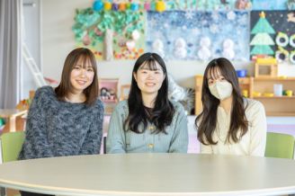 (写真左から)本活動に携わったゼミ生の古川綾乃さん、外山礼華さん、後藤菜南さんに、取り組みを振り返ってお話をお聞きしました。
